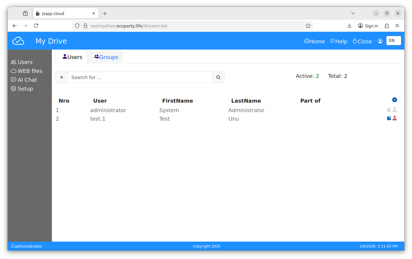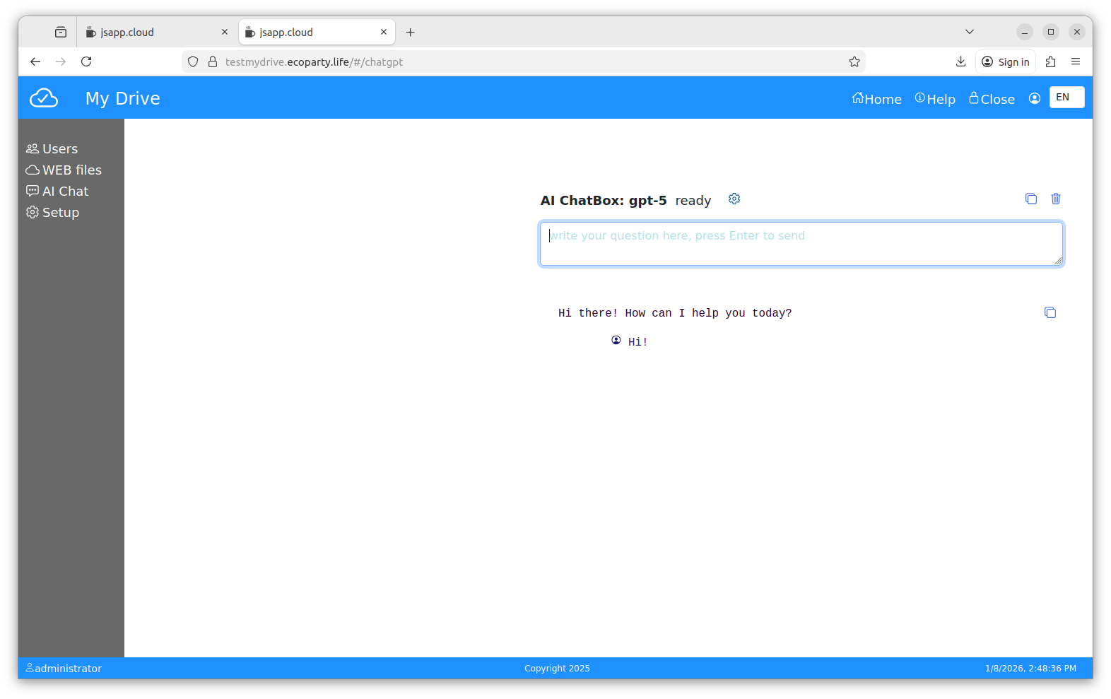 My-Drive.CLOUD is based on JSAPP.CLOUD web application development platform.