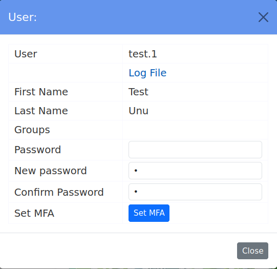 To activate the MFA option, you will need to open your user configuration window and press the "SET MFA" button.