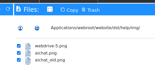 The location of the files is the "Application/webroot/website/" folder (administrator account).
